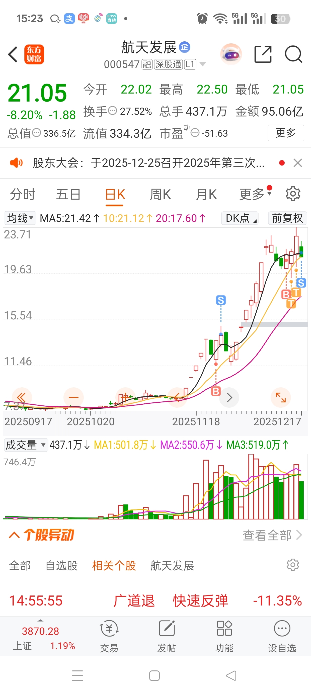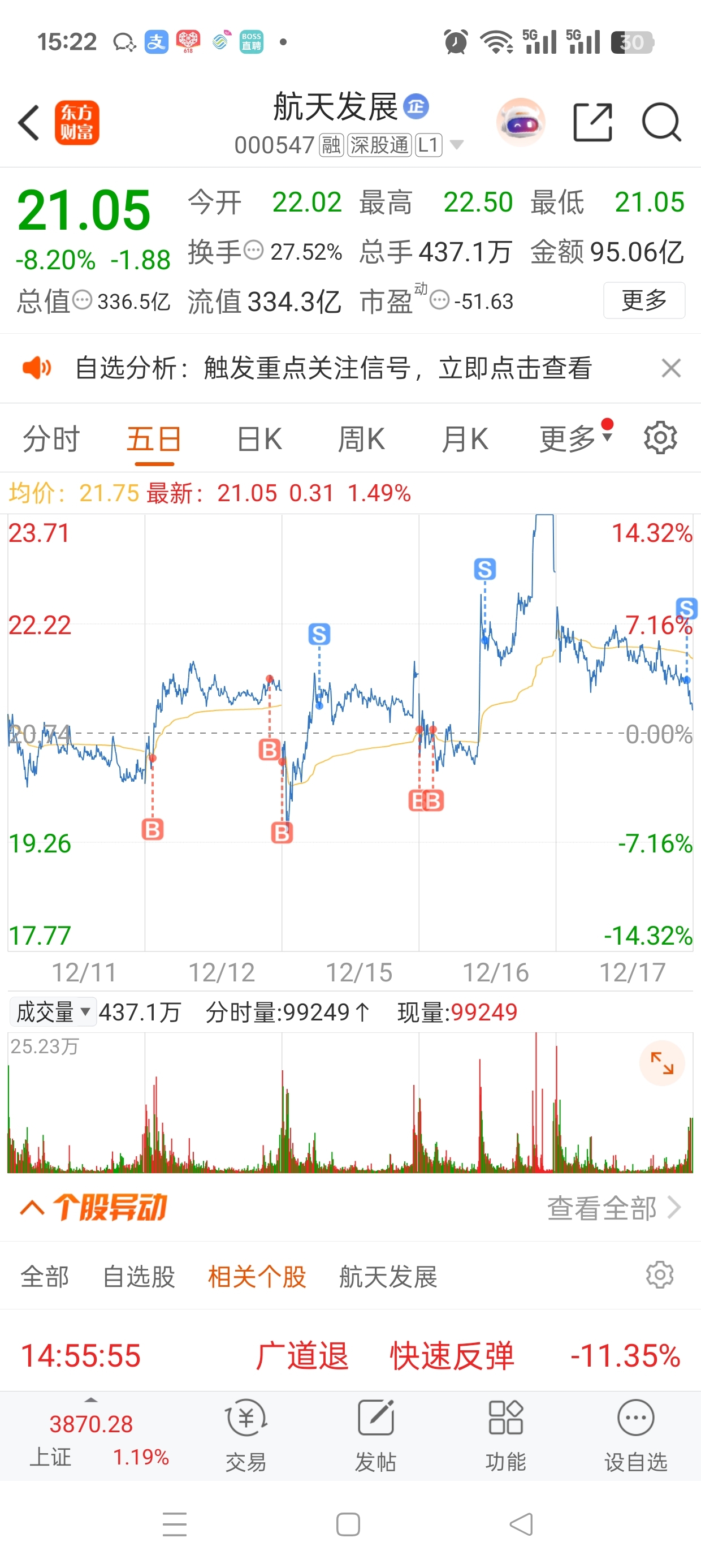 $航天发展(SZ000547)$ 核心龙头今天走成这样也能理解,毕竟很多高标都在地板上,龙洲大单一字跌停板,平潭尾盘也被按到跌停,导致航天发展越走越弱,不卖也不行了,感谢航天两进两出带来的利润