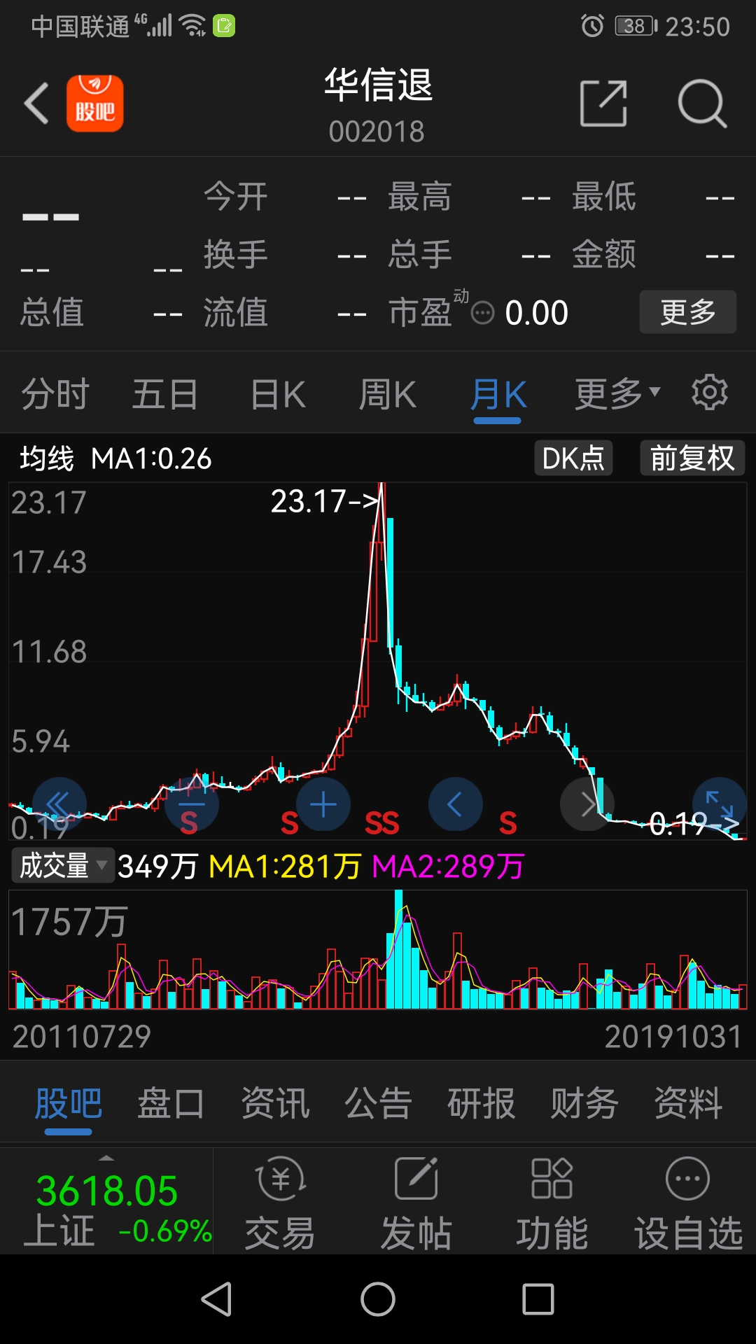 华信退市股的股价从51元砸到0.18元,大砖家小股民还有多少货没出完?还有多少肉没割完?究竟有多少没有成本价,无限量的股票在源源不断的砸盘套现?