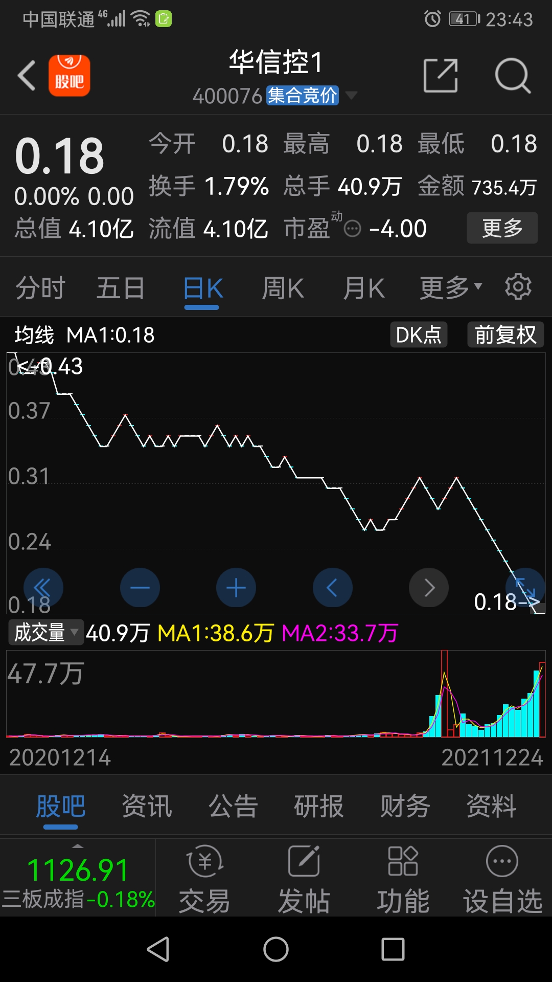 亏损仅—39.81亿元,负债仅—17.51亿元的华信退市股最低价却砸到了0.13元,割韭菜后能拉多高?