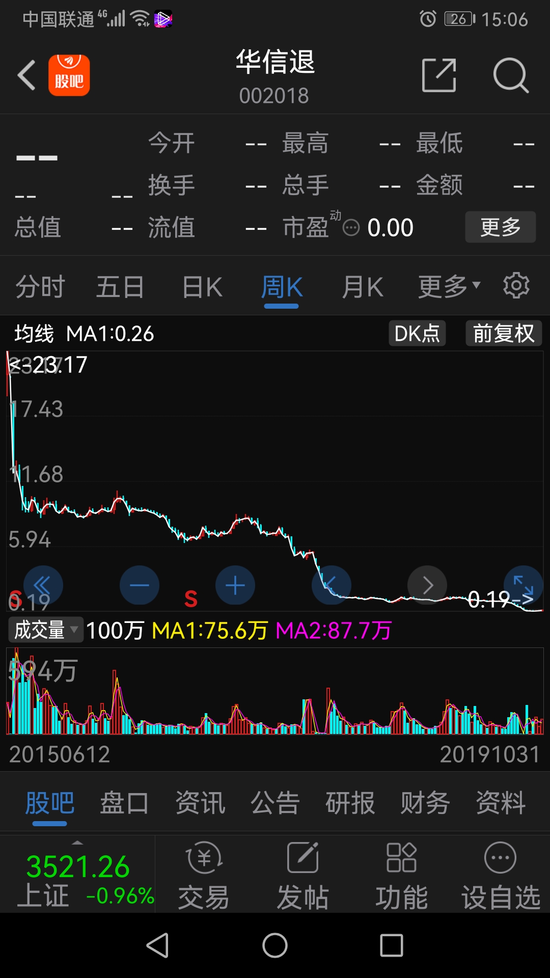 负债仅—14.552亿元的华信国际股价就敢砸到0.18元?