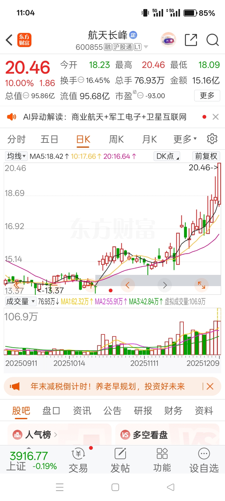 $航天长峰(SH600855)$ 这10cm大长腿,谁受得了,继续拿好,兄弟们,
