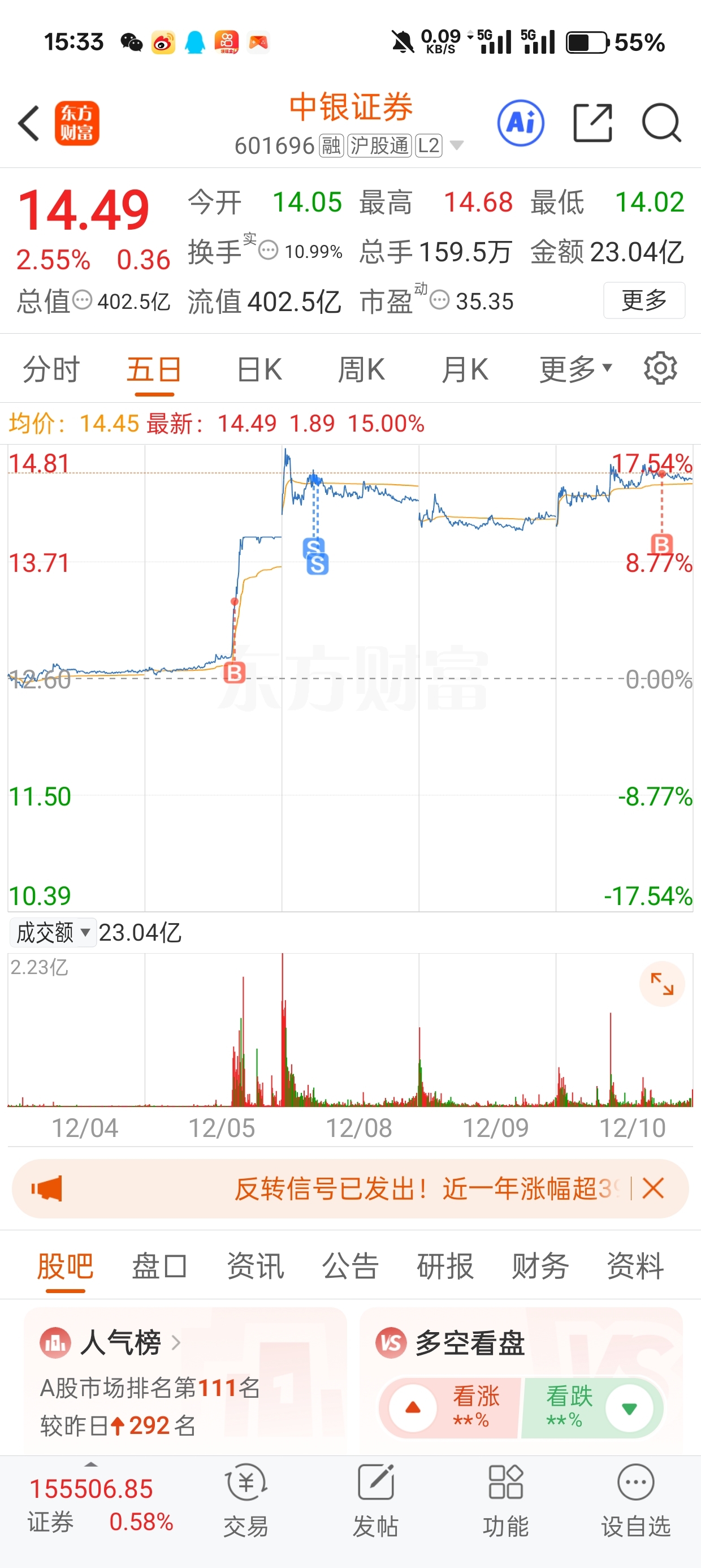 $中银证券(SH601696)$ 又回来了,博一手明天