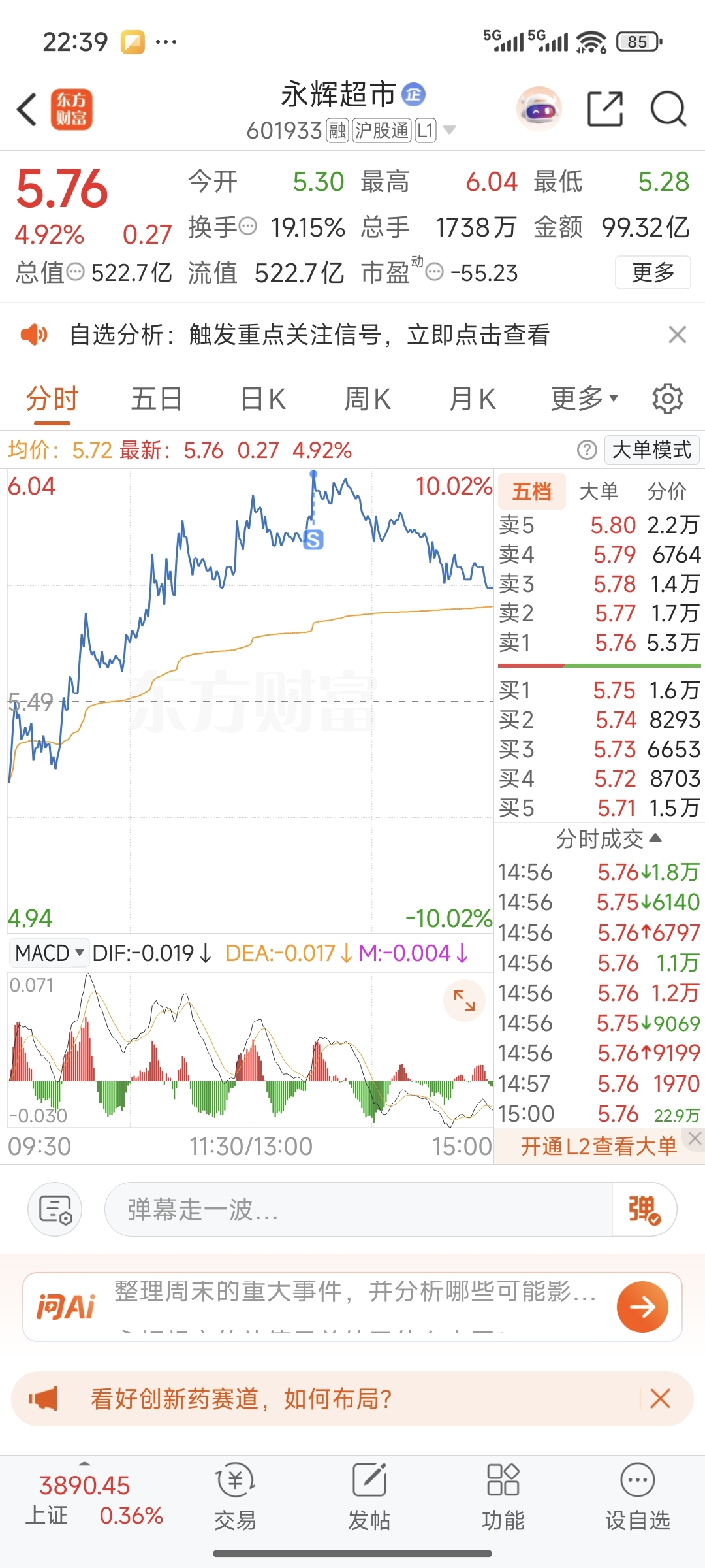 $永辉超市(SH601933)$ 逃顶了,下周还想进,这波消费行情结束了?还是转航天?