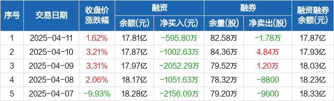 中联重科:连续5日融资净偿还累计6858.45万元(04-11)