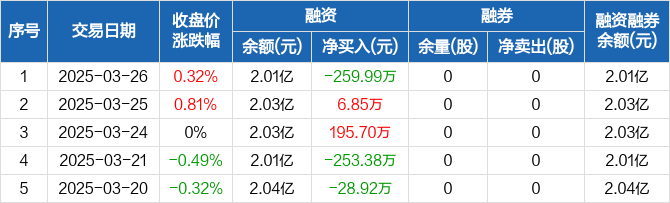 鲁泰A:融资净偿还259.99万元,融资余额2.01亿元(03-26)