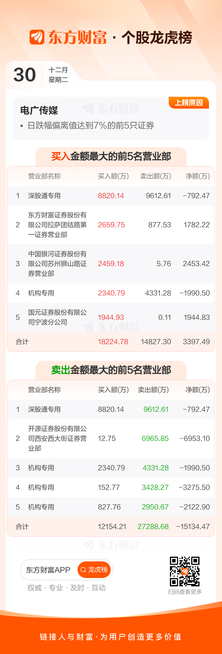 电广传媒(000917)龙虎榜数据(12-30)