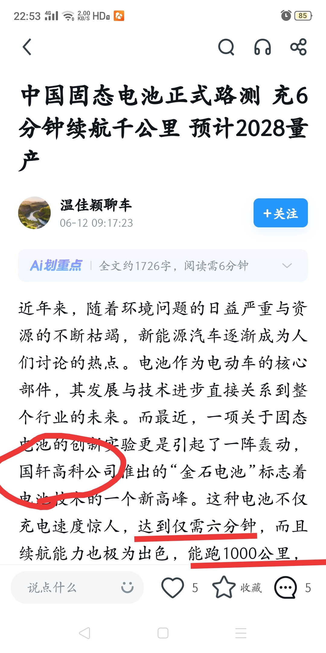 $国轩高科(SZ002074)$ 充电6分钟,续航1000公里!什么概念?逆天啊。起码来了3倍吧……