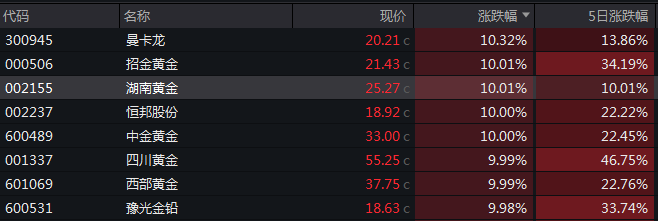 1月26日,贵金属板块个股全部上涨,不管是矿端的四川黄金,还是冶炼环节的恒邦股份,甚至是消费领域的曼卡龙,至少有12只黄金股报收涨停。
