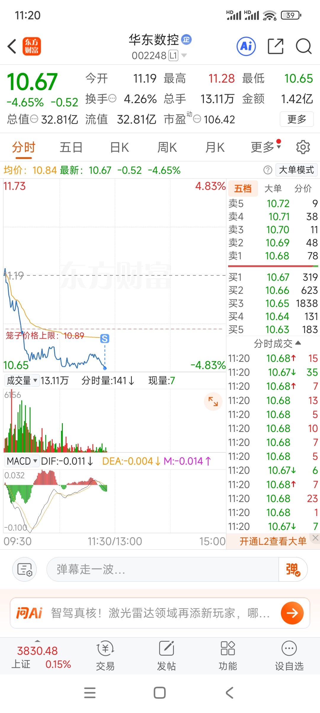 $华东数控(SZ002248)$ 我割肉了