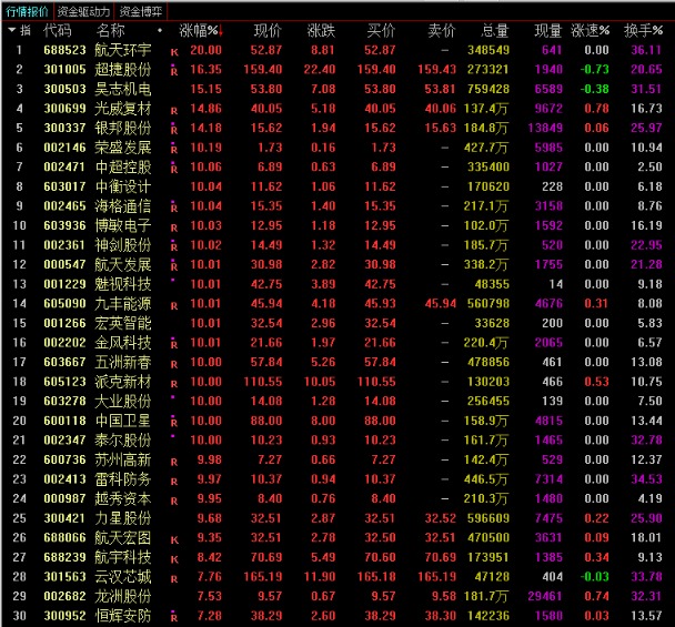 12月29日,商业航天板块内,航天环宇20cm涨停,超捷股份、昊志机电、光威复材、银邦股份涨超10%,荣盛发展、中超控股、中衡设计等10余股涨停,力星股份、航天宏图、航宇科技等多股跟涨。