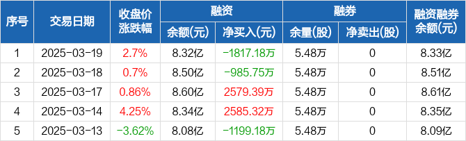 东方精工:融资净偿还1817.18万元,融资余额8.32亿元(03-19)