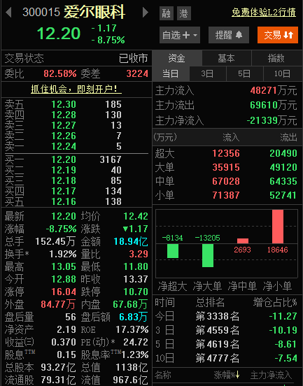【大河财立方记者王宁宁】4月7日,受美“对等关税”政策冲击,全球股市震动。大河财立方记者注意到,爱尔眼科收盘价下跌8.75%,报12.20元/股。
