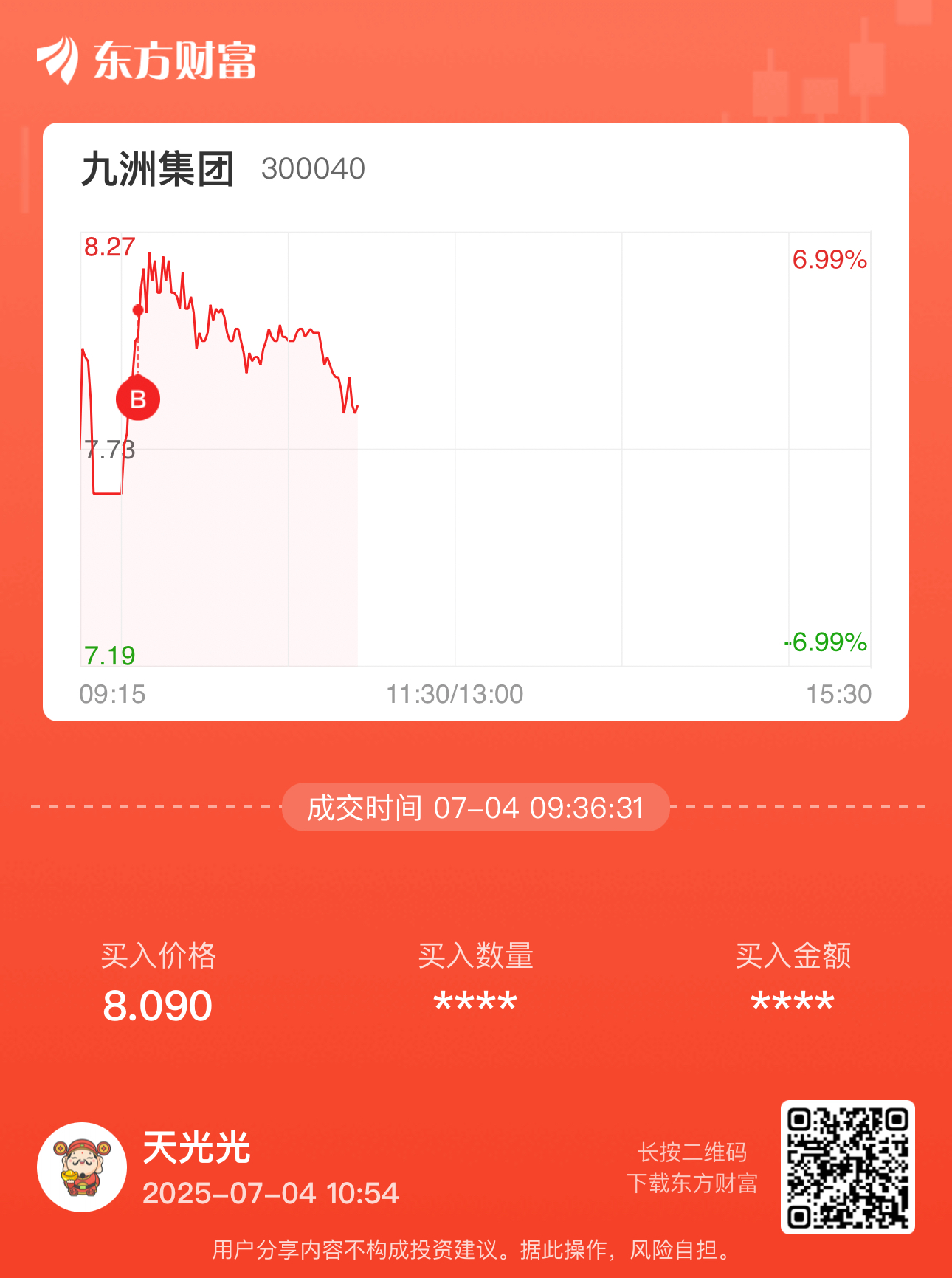 温馨提示: 1.根据《证券法》规定,禁止编造、传播虚假信息或者误导性信息,扰乱证券市场;2.用户在本社区发表的所有资料、言论等仅代表个人观点,与本网站立场无关,不对您构成任何投资建议。用户应基于自己的独立判断,自行决定证券投资并承担相应风险。《东方财富社区管理规定》