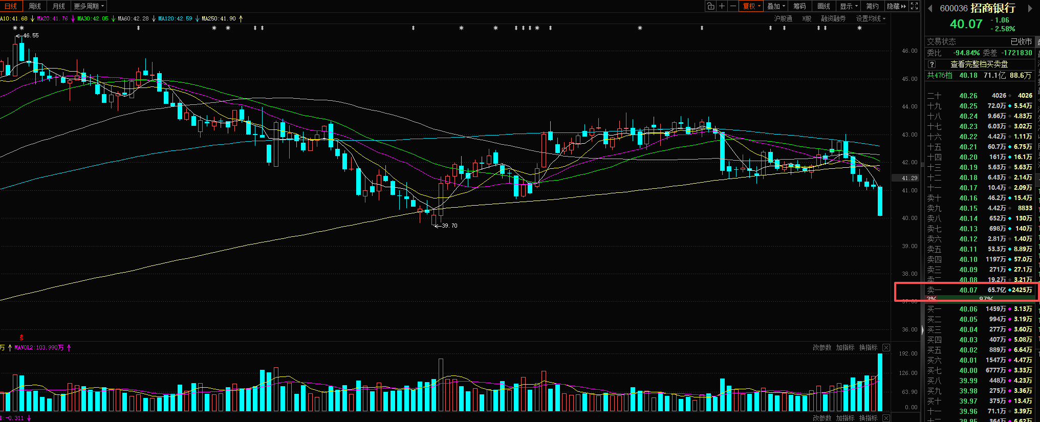 昨天大盘开盘后就一路反包,午前又创了新高,全场其乐融融。结果中午风云突变,一则消息提高融资保证金比例,大盘直线跳水,这是降温的第一个信号。尾盘出现大额压单,招商银行超65亿,长江电力超36亿。还有多个权重股,如紫金矿业、贵州茅台等。这是第二个信号。