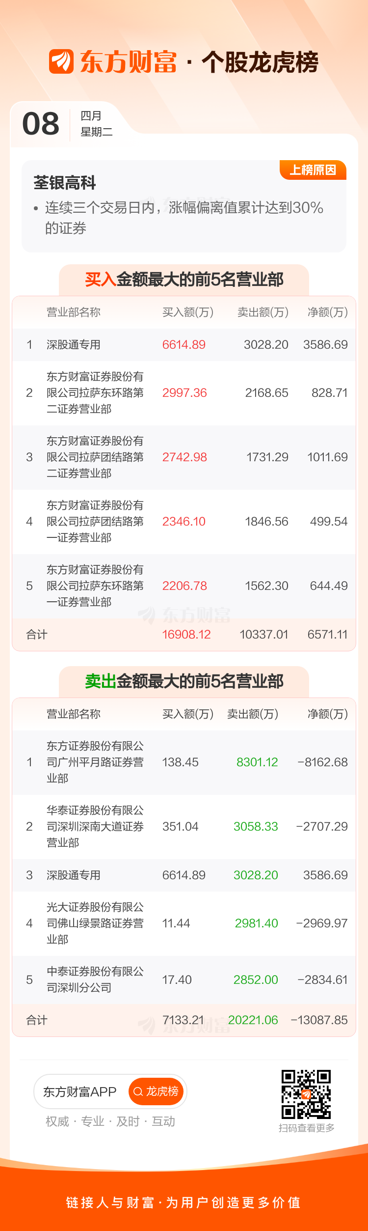 荃银高科(300087)龙虎榜数据(04-08)