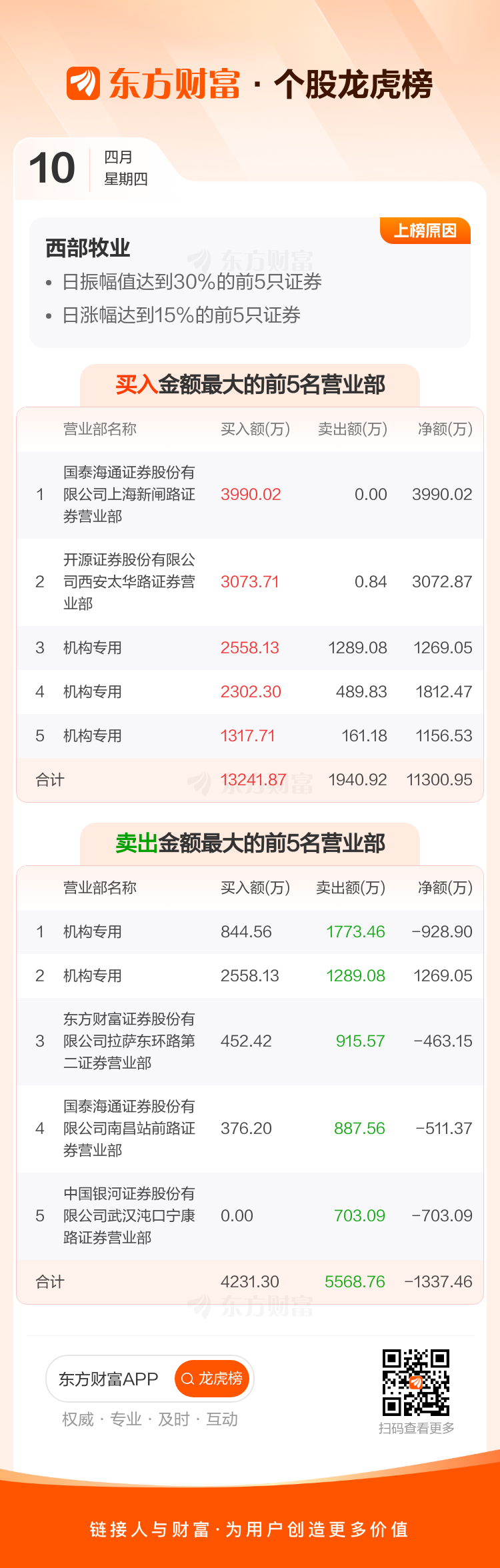 西部牧业(300106)龙虎榜数据(04-10)