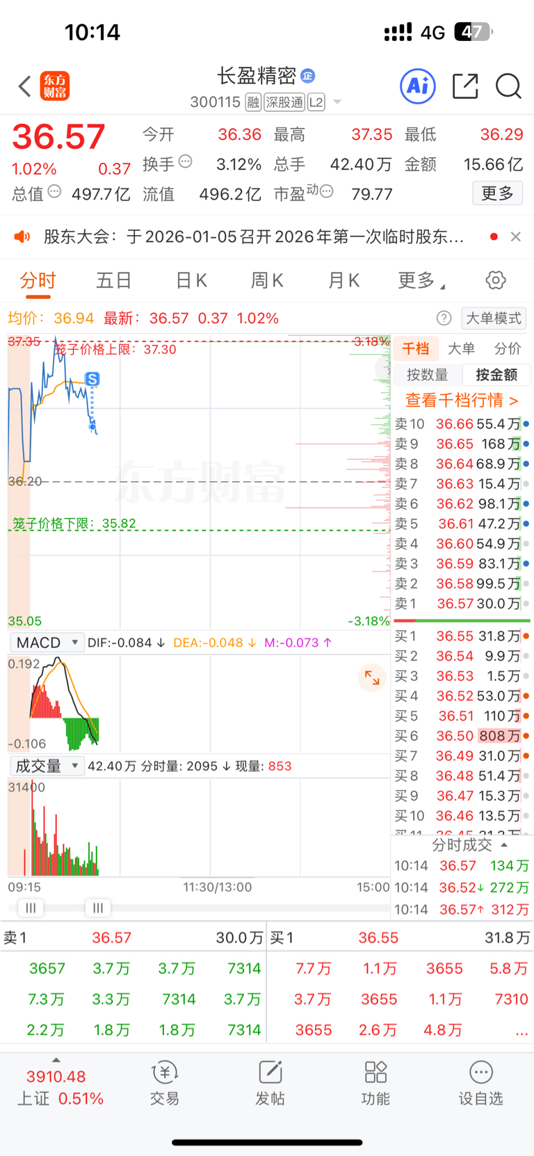 $长盈精密(SZ300115)$ 止盈长盈落袋为安