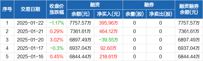 通用电梯:融资净买入395.96万元,融资余额7757.57万元(01-22)