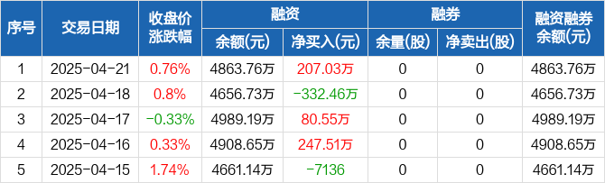 毓恬冠佳:融资净买入207.03万元,融资余额4863.76万元(04-21)