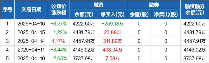 首航新能:融资净偿还259.18万元,融资余额4222.6万元(04-16)