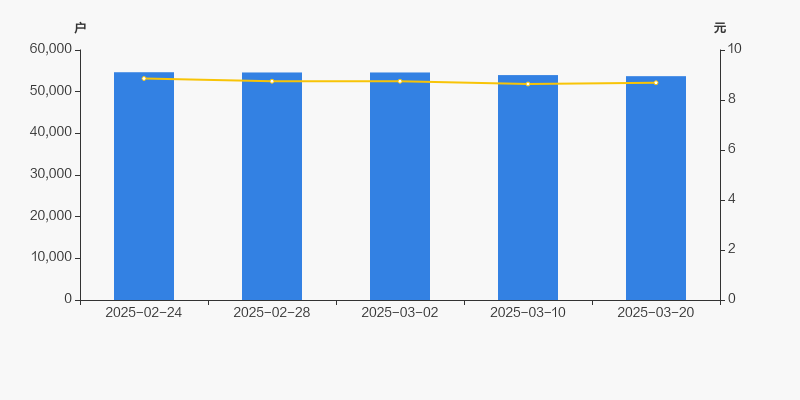 2025年2月24日至今,公司股东户数有所下降,区间跌幅为1.73%。2025年2月24日至2025年3月20日区间股价下降1.92%。