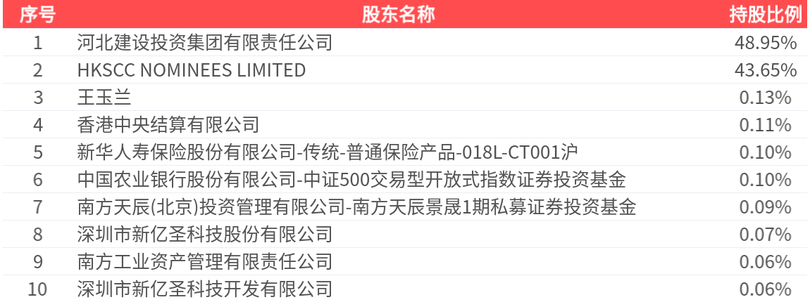 公司股东户数为4.52万户,前十大股东持股数量为39.25亿股,占总股本比例为93.34%,前十大股东持股情况如下: