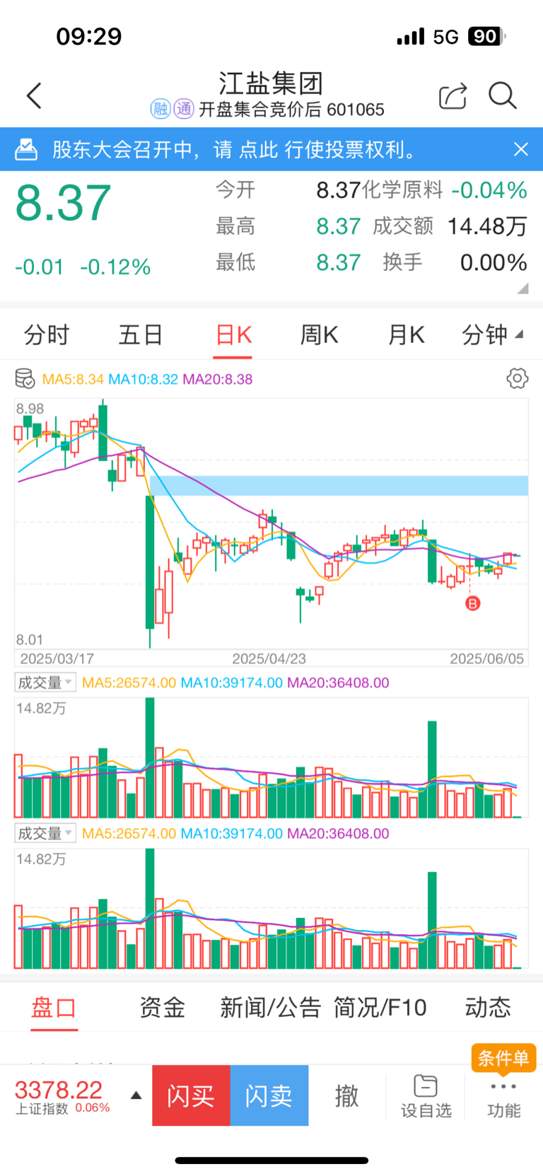 $江盐集团(SH601065)$ 抄底成功?不赚大钱懒的动了~
