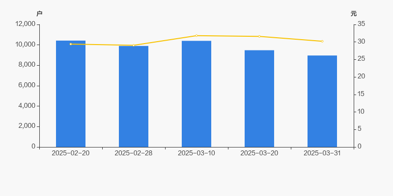 截至2025年3月31日,公司最新总股本为1.44亿股,其中流通股本为1.36亿股。户均持有流通股数量由上期的1.44万股上升至1.52万股,户均流通市值45.93万元。