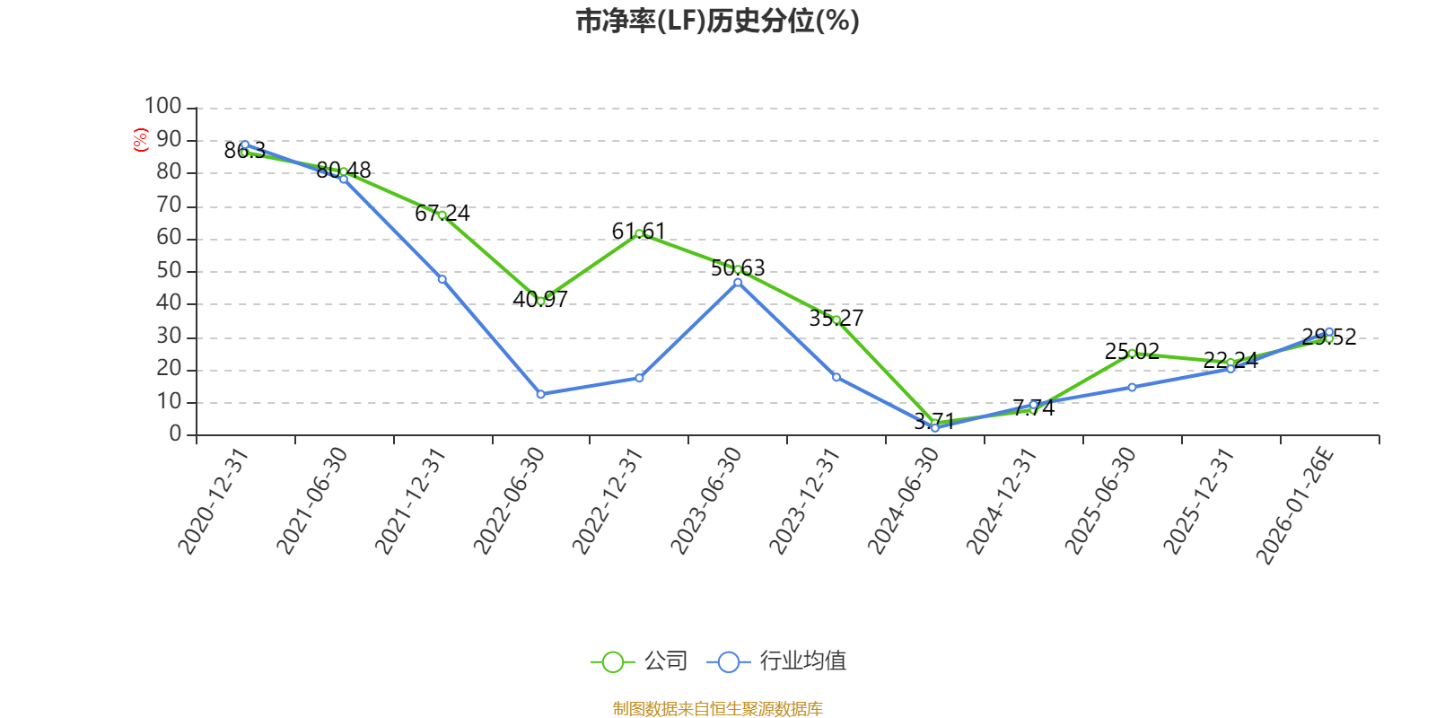 市盈率、市净率为负时,不显示当期分位数,会导致折线图中断。