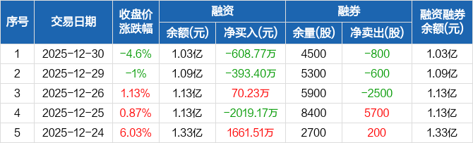 德龙激光:融资净偿还608.77万元,融资余额1.03亿元(12-30)