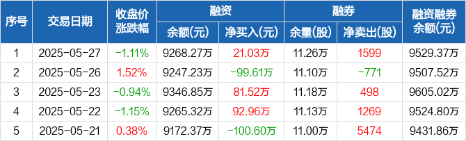 三一重能:融资净买入21.03万元,融资余额9268.27万元(05-27)