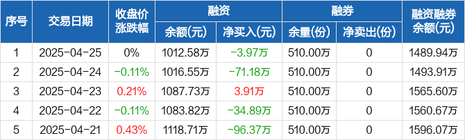 A500ETF易方达:融资净偿还3.97万元,融资余额1012.58万元(04-25)
