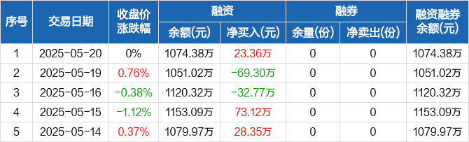 房地产ETF:融资净买入23.36万元,融资余额1074.38万元(05-20)
