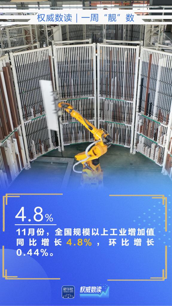 11月份,全国规模以上工业增加值同比增长4.8%;12月18日,海南自由贸易港正式启动全岛封关;工业和信息化部许可两款L3级自动驾驶车型产品……本周,这些数据最值得关注!