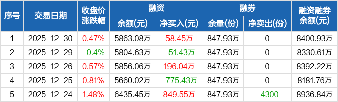 中证500ETF:融资净买入58.45万元,融资余额5863.08万元(12-30)