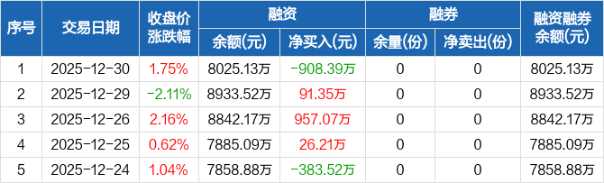 电池50ETF:融资净偿还908.39万元,融资余额8025.13万元(12-30)