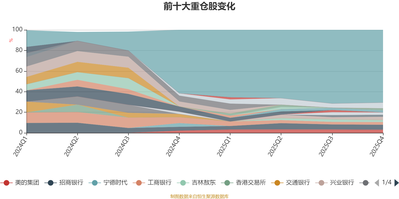 截至2025年四季度末,基金十大重仓股分别是中国平安、招商银行、兴业银行、美的集团、工商银行、中信证券、国泰海通、吉林敖东、龙佰集团、格力电器。