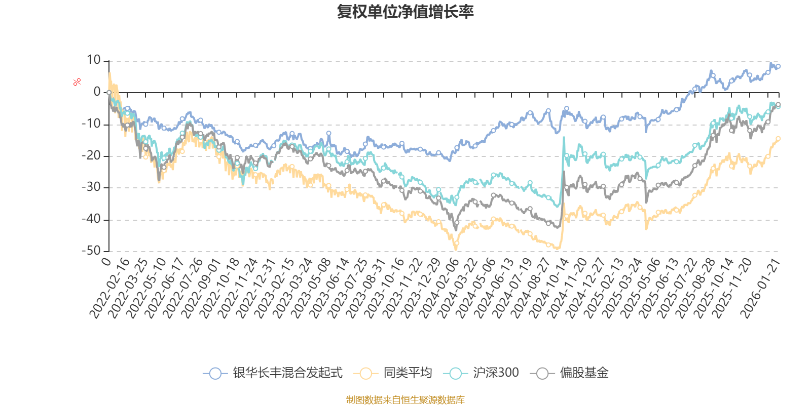 截至1月21日,银华长丰混合发起式近三个月复权单位净值增长率为3.96%,位于同类可比基金481/621;近半年复权单位净值增长率为7.41%,位于同类可比基金551/621;近一年复权单位净值增长率为21.02%,位于同类可比基金510/613;近三年复权单位净值增长率为24.07%,位于同类可比基金212/535。