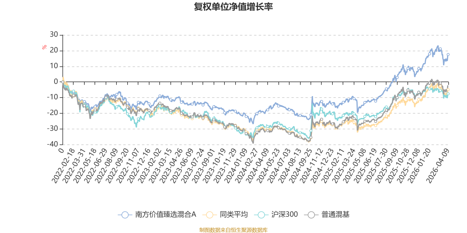 截至4月9日,南方价值臻选混合A近三个月复权单位净值增长率为1.40%,位于同类可比基金45/134;近半年复权单位净值增长率为5.71%,位于同类可比基金43/134;近一年复权单位净值增长率为44.40%,位于同类可比基金35/134;近三年复权单位净值增长率为30.29%,位于同类可比基金26/126。