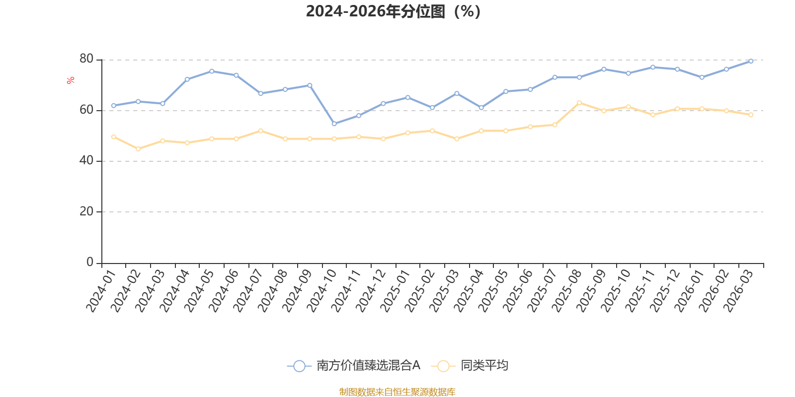 通过所选区间该基金净值增长率分位图,可以观察该基金与同类基金业绩比较情况。图为坐标原点到区间内某时点的净值增长率在同类基金中的分位数。