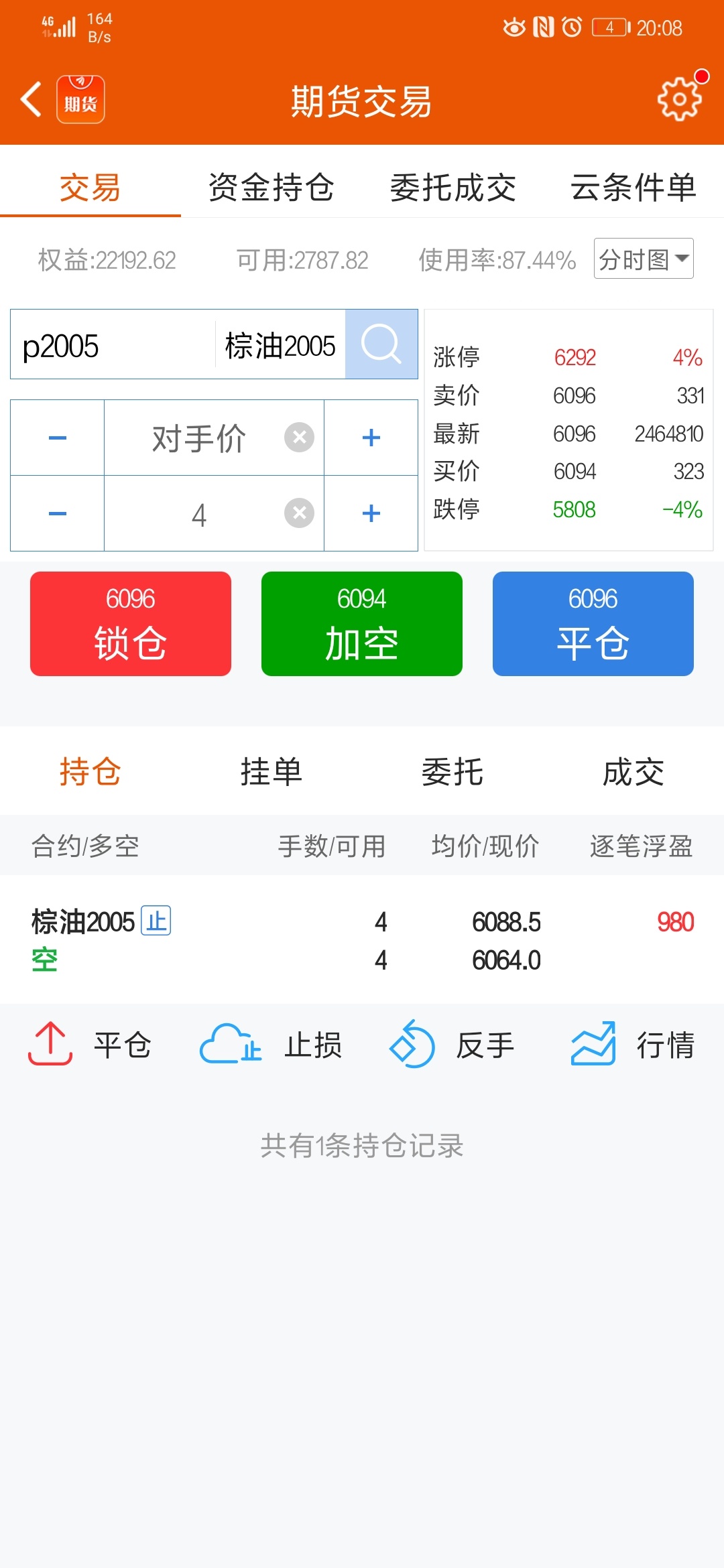 请问为什么闭盘是96,我这边却显示64?我设置的这个止损高开50点,会118自动