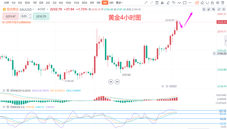 黄金连续暴涨,价格突破2200大关,上破历史新高2222后再创新高2236,目前行情依然是多头走势,新高2236肯定是要破的,但是根据月线周线日线同时大阳柱来看,预计下周还会有新高。月线低点2038企稳拉升198美金,本周周线低点2163企稳拉升73美金,日线上周四低点2187企稳向上多头发力,涨了49美金。由于本周五耶稣受难日休市一日,下周非农数据成黄金空头救命稻草。