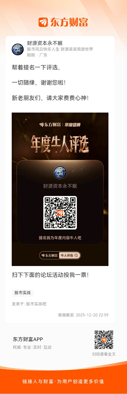 温馨提示: 1.根据《证券法》规定,禁止编造、传播虚假信息或者误导性信息,扰乱证券市场;2.用户在本社区发表的所有资料、言论等仅代表个人观点,与本网站立场无关,不对您构成任何投资建议。用户应基于自己的独立判断,自行决定证券投资并承担相应风险。《东方财富社区管理规定》