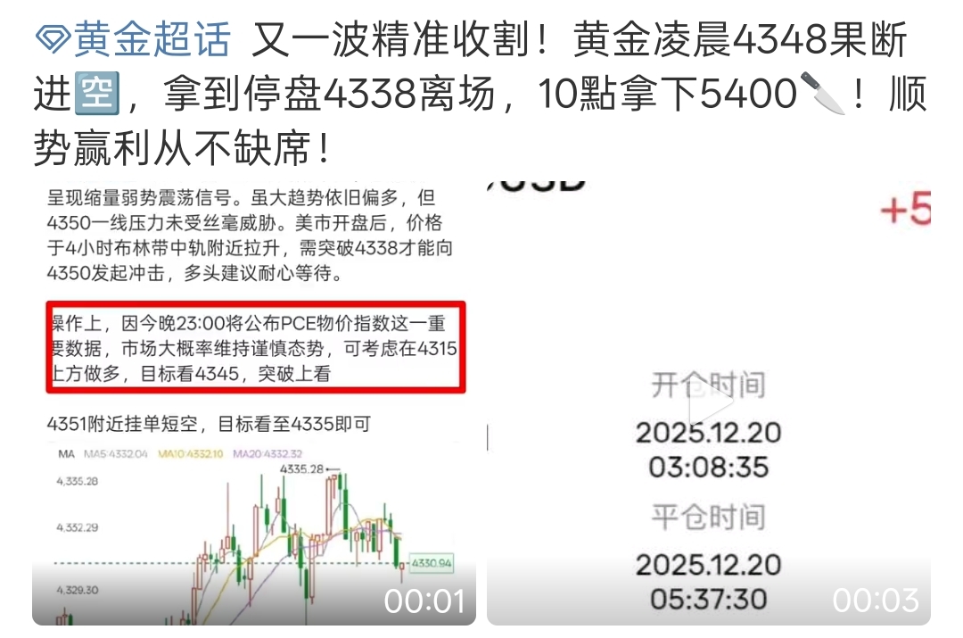2. 又一波精准收割!黄金凌晨4348果断开空,拿到停盘4338离场,10点空间拿下5400刀!顺势操作,盈利从不缺席!