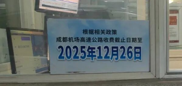 自2025年12月26日24时起,成都双流机场高速公路停止收费。