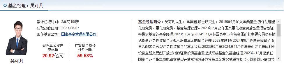 而且这只基金的基金经理吴可凡,在量化指数领域深耕多年,管理过多只指数型基金,经验丰富,操作风格稳健,跟着这样的基金经理,心里更有底。